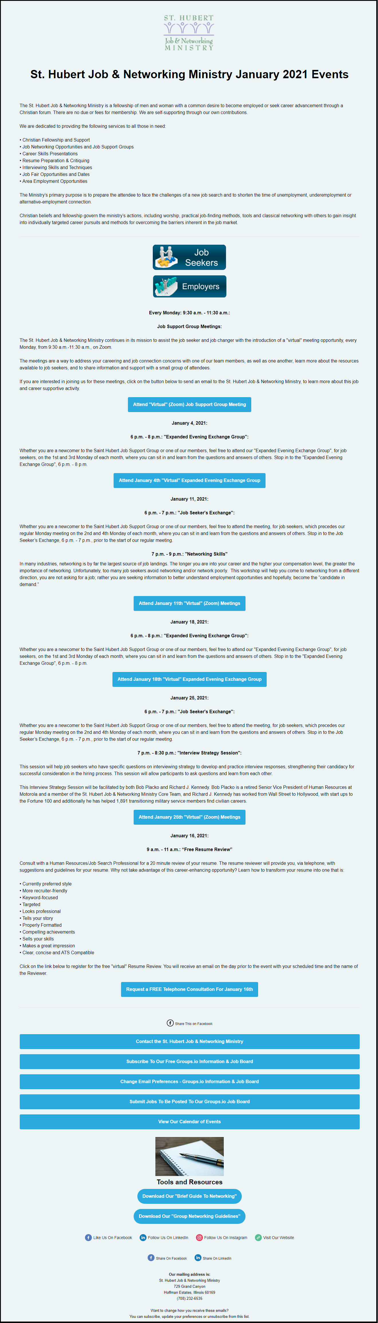 - Links to your website, LinkedIn, Facebook page and Instagram page.