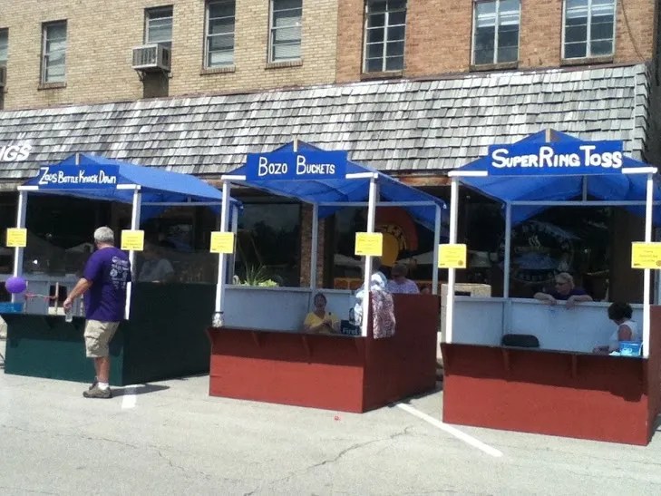 Johnson explained what is involved in coordinating the volunteers. ”You’ve got to find volunteers, you’ve got to get people to donate, not only money, but time, you’re finding all of our sponsors…you’re communicating with the city government in order to set up the days and dates. You’ve got to be down here early Friday morning to start to set up. We don’t start the festival [until] 5 o’clock in the afternoon, but you’re actually down here at 6 o’clock Friday morning, to get started on setting things up. You’ve got to clear the entire three blocks of the city, [because] we have cars parking all the time…they’ve got to be completely cleared out of here by 5 o’clock, [so we can get ] the festival going…You’ve got all these downtown businesses…their customers cannot park downtown and just walk right into the store,” said Johnson, “You’ve got all the people that are…from the Methodist Church, and the banks, that are doing all these games, trying to help them get set up, trying to help staff their booths, you’ve got the hospital…that does their large booths. That’s the most difficult…coordinating it all. You need one person that is in charge of volunteers. In previous years, my wife [and] myself were the people in charge of the volunteers. I [was in charge of] all the guys, and she [was in charge of] all the ladies that were working in the information booth. So, she would tell them what time to be here, and where to be, and I’d tell all the guys what time we were going to be doing things, like setting up the children’s games, and setting up tables and chairs. That’s the biggest [challenge]…is getting it all coordinated…You [have] some volunteers that [are here] an entire 3 days. You [have] some volunteers, like I am this year…wife and myself…we’re here from 10 o’clock to 2 o’clock today.” It’s amazing that everything gets together. This year, Jim Martens and Nicole Diaz did a heck of a job.”