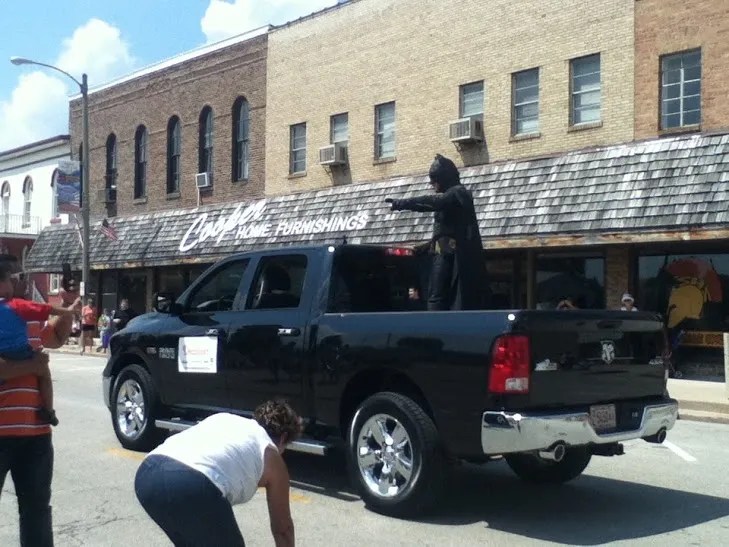 The Plano Library had a book sale, “[The library starts] that [book sale], they [begin it] on [August] 14th, always the beginning of our festival…it’s a really nice addition,” said Diaz. The Super Cutouts returned, “Those were built by one of our Committee members…actually, the person that does the artwork. He did a great job, and it’s one of our main attractions, that people get their pictures taken, or take pictures of their children. Those Cutouts…we have the flag mural in the background. You can get some neat pictures,” said Mayor Hausler. “[We may add a] Batman…maybe a Wonder Woman…it depends on the new Justice League movie,” said Diaz. There was also a Pancake Eating Contest, “Pancake Eating Contest was great this year. They had 10 participants…and it took about 40 minutes for the winner to win,” said Diaz. “See…who can eat the most pancakes…nice Kryptonite-green pancakes,” said Johnson. Diaz explained 95.9 The River Mobile Vehicle, “What they do is [they] come out and they [generate] interest [in] the radio station.” There was also a [Krypto] Jello Eating Contest, “[The participants that drink] green jello [through a straw]…the [most quickly] wins. [There are] three different age groups, and then we have a playoff after [that],” said Diaz. There was also an Excavation of a Vehicle, “The fire department [demonstrates the excavation of a vehicle]. The fire department came to me [with that idea],” said Diaz. There was also a SuperFest Worship Service, “That’s a multidenominational [service],” said Diaz. Diaz explained 50/50, “We…sell tickets and split the pot.” “[It’s an] idea to generate some funds for the Committee. [Smallville SuperFest] is put on by sponsorship and by money generated by the Committee for the festival. It’s self-sustaining,” said Mayor Hausler. There was also a Balloon Launch, “[We’re] honoring one of our fellow photographers that had come down [for] the filming of the [‘Man of Steel’] movie…she passed away in September, and so, we’re honoring her and we’re also honoring all [of] our losses. The balloon has little lights in it, and lights up when [it is let] go. [That idea was inspired by] a local merchant [that] does it yearly,” said Diaz. The Andrew Kuebrich 5K [Hero] Run honored one of Plano’s residents, “That’s [an] event commemorating the life of one of our young residents who had passed away,” said Mayor Hausler. Also included was a Bluegrass Session, “We have some guys that [play music] and have fun,” said Diaz. There was a Friendly-Tap Poker Run, “That’s a fundraising event that one of our local bars [does]…the bar contributes that money to a charity [event],” said Mayor Hausler. D.J. A.J. Torres is “…our D.J. that does the announcements,” said Mayor Hausler. There was also a caricature artist: “One of our residents that makes different caricatures out of balloons,” said Mayor Hausler, “as far as the people attending…I have had positive feedback about [the attractions].”