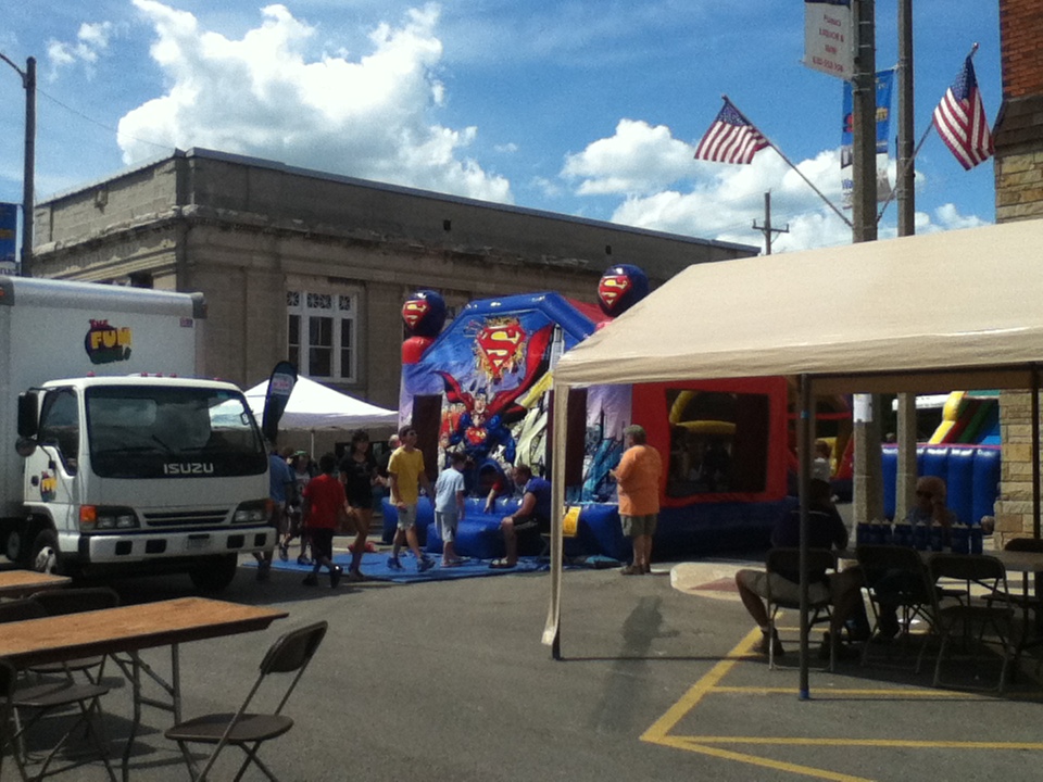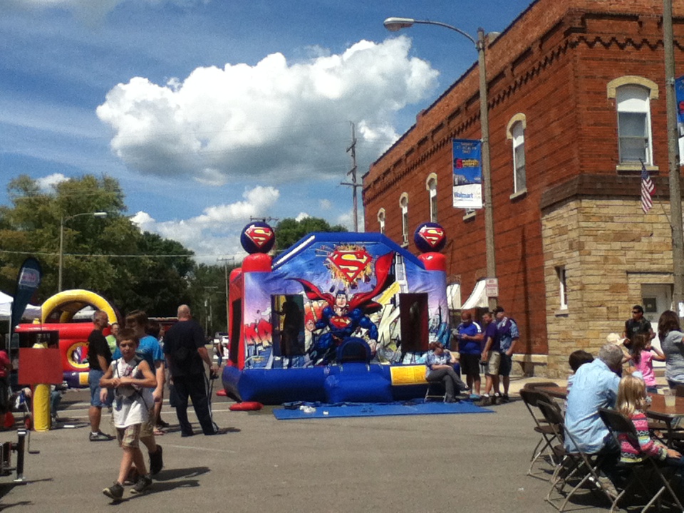 “In February, it came to a point where we knew our time was getting short to get all this stuff booked. We hadn’t made any contacts; we just had an idea. Even in February, August is very close…we just started, in February, just making as many contacts as we could, and just setting things up, and our goal was to get everybody to come and do something,” said Martens. “We’ve been [planning]…I think we’ve been at it at least 6 months…6…7…months…for the Fest,” said Susan Bennett, Vendor Manager. “Give thanks to the 20 or so people in the SuperFest committee that showed up once a month and got these meetings accomplished. As with any committee, sometimes it’s hard to get things done, but we managed to always just work through all the problems and get things done and taken care of,” said Martens. “We’ve had two to three meetings a week. At first, we didn’t really know anything about running a fest, and just through meeting with different people, different peoples’ involvement in different fests, everybody just came together, and tried to learn everything that we needed to learn in order to put on a successful fest. We went to other fests, to see what they were doing, and just tried to really put on something that the community would enjoy coming to,” said Bennett. The first few meetings were just to come up with a name for the event. According to Martens, the easiest part of planning Smallville SuperFest was passing it through the city council. However, there were challenges along the way. “Everything took a lot of time. Some things seem easy, and they just don’t come together the way you expect them to, and you try force them to work out, when sometimes you just need to let them happen…I’m just glad everything has come together, and we’re here today, and the weather is beautiful.” According to Martens, “We worked with local carnivals to build vendors lists and book vendors for this. We tried to give everyone a little bit of exclusivity, where we’re not overbooking the same types of things…”