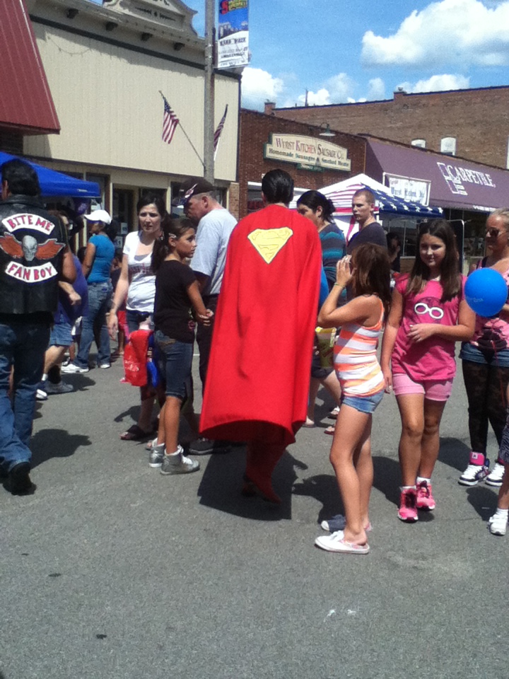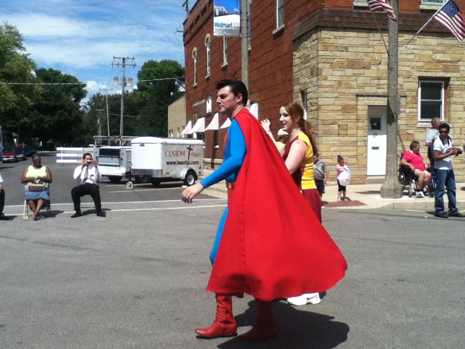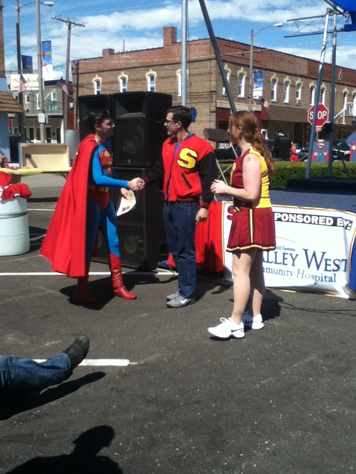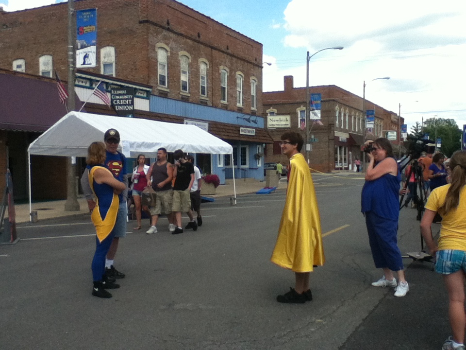When the “Man of Steel” was filmed, four city blocks were occupied; Smallville SuperFest only occupied two-and-a-half, but the Smallville SuperFest committee plans to extend it next year. “Oh, absolutely. The whole idea was to get it started this year, but I don’t think any of us anticipated the success of this year’s. We wanted to make a small event to start out with, and have it manageable, and then grow. But the reception and the participation of the residents and the other citizens of neighboring communities and that and people that we’ve had come from St. Louis and Chicago and those places. We just want to keep growing and making it better,” said Mayor Hausler. “We definitely expect to extend the fest grounds for next year. We‘re prepared to make it a little bit bigger for next year,” said Martens, who said that the committee plans to began building vendor and artists clients in January. “[We are] looking forward to the release of “Man of Steel,” June 14, we plan on doing something at that time…to coordinate with the movie release, and leading into next year‘s second annual Smallville SuperFest 2013. I’d have to say we’ll have more vendors; we plan to extend the festival.” “The committee will meet again, and talk over the things that were successful, and any changes that need to be done to make it a better event. This type of a thing is a big learning experience. Most everything has gone very smooth, a lot better than I think any of us would have anticipated, but there’s always things that you can improve on. With the movie being released, there are a lot of things that we can add. I think [the movie] will just add to the excitement. We definitely are planning another celebration…like this,” said Mayor Hausler.