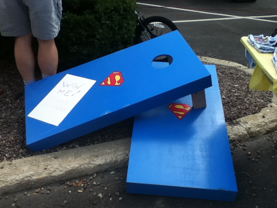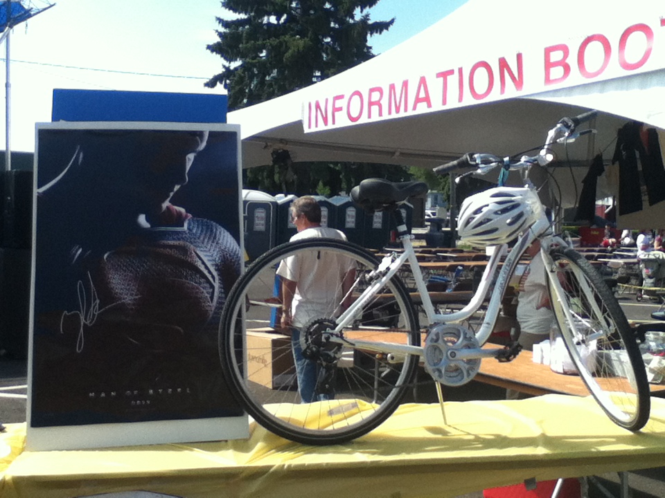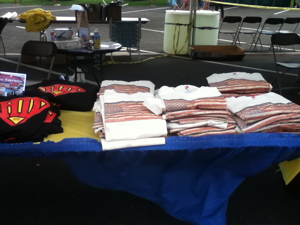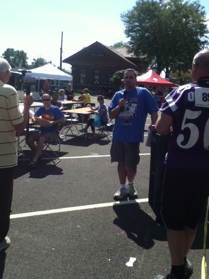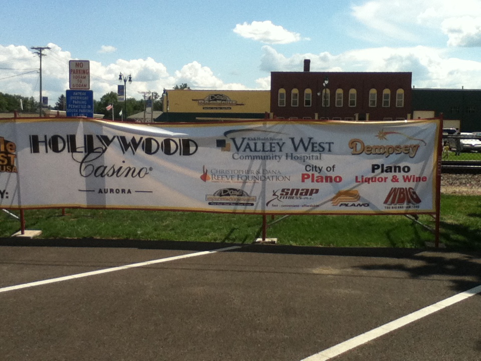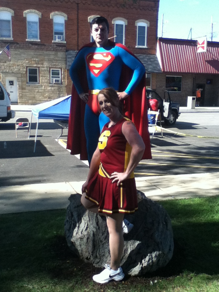 There were many attractions at Smallville SuperFest, including a ‘Super Zipline,’ that would allow people at the festival to fly like Superman, down Main Street. According to Mayor Hausler, approximately three hundred people went on the Zipline, “From 3:00 to 7, and there was a steady line all during that time.” He said that it was “a city-block long, and about 40 feet high.” Another event was ‘Fishing With the Mayor,’ which is an event that began a few years ago, when Bob Hausler became Mayor of Plano. “Oh, that was very much fun. That was a very successful event. I would say we had around 70 kids participating,” said Mayor Hausler, “Illinois DNR has a program that loans fishing poles, and so I had 100 fishing poles from DNR, we have sponsors that buy the bait, we have what we call a little shore lunch. We have sponsors providing water, Gatorade, hot dogs, and potato chips, and it‘s a family event that we do, and we welcome parents to bring their young kids down. We also have a lot of volunteers to help the kids. It‘s held at one of our city parks, that we have a little pond that we stock before the event every year with little gills, so the kids have fish willing to bite their hook, and it‘s a fun event. [Saturday], we had several kids that had never fished before, that got their first fish, and [they were] all excited.” The ‘Villain’s Jail,’ was a charity event, from which all of the proceeds went to the Christopher Reeve Foundation. “Our local Rural King’s store sponsored that event, and different people were chosen to be in the jail, and then there was a certain amount of money that they would have to donate to bond out, or people could have them sit in longer if they contributed…All the proceeds from that went to the Christopher Reeve Foundation. We‘ve had a great mixture of those types of events for charity organizations…we’ve had a great mixture of charity type,” said Mayor Hausler. “Somebody had Superman arrested. He was in there, and he didn’t have any money because he doesn’t have any pockets in his outfit, so he had a tin cup that he was hanging over the side, and collecting quarters from people, and he got $20 to get out,” said Gardner. A ‘Bike Safety Rodeo’ was set up, “That was held over here in the parking lot. That’s something that our police department did. They set up a course, they have all kinds of different props of houses and streets and things, and that’s [a] pretty cool-looking course that they set up, because of the props and that. They showed the kids the proper way to cross the street and bike safety,” said Mayor Hausler. A ‘SuperFest Strongman Contest’ was held, for which applicants could sign up in advance at Snapfitness, and could audition for placement in one of eight categories. The most popular attraction, according to Mayor Hausler and Gardner, “Other than Brad’s cutouts, that he made of Superman, that people can put their heads on, and look like either Supergirl or Superboy…the flag, probably, and all the vendors…[The] Zipline, where people could fly down Main Street. That was very popular.” Charlee Chartrand, who portrayed Superman at the Smallville SuperFest, has some ideas for Smallville SuperFest next year, “something that they paid for to come here…something that Plano actually wanted to bring themselves…they paid for a company to bring a Zipline here…that was so much fun.” Other attractions included volunteers who showed up dressed as Clark Kent, Lois Lane, Lana Lang, the Blur, Superman, and Superboy. There was also face painting, edible Kryptonite, and Smallville SuperFest key chains. “When they were doing the movie and had the town closed down, so many people were coming to town that a lot of businesses made their own t-shirts. So you can see a lot of people have these other old t-shirts that are from last year that are somewhat Superman-related…there was fifteen different styles of t-shirts that were made last year, which kind of started us on what we were doing for our merchandize for this year,” said Martens.