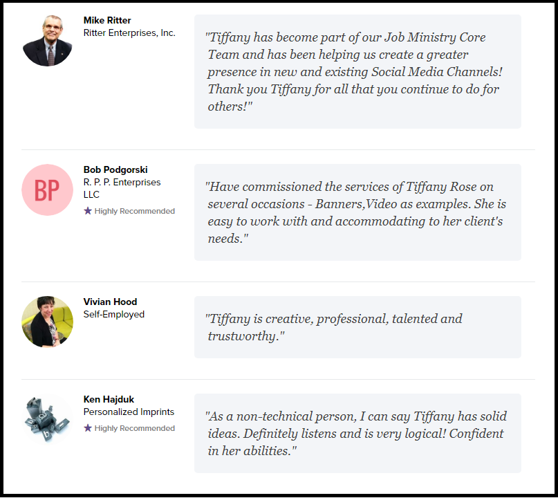 Read Alignable reviews of Tiffany Rose Creative Media LLC’s services:
